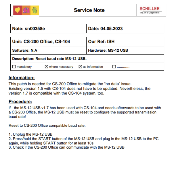 MS-12 USB for CS-200 Office and CS-104 "no data issue"