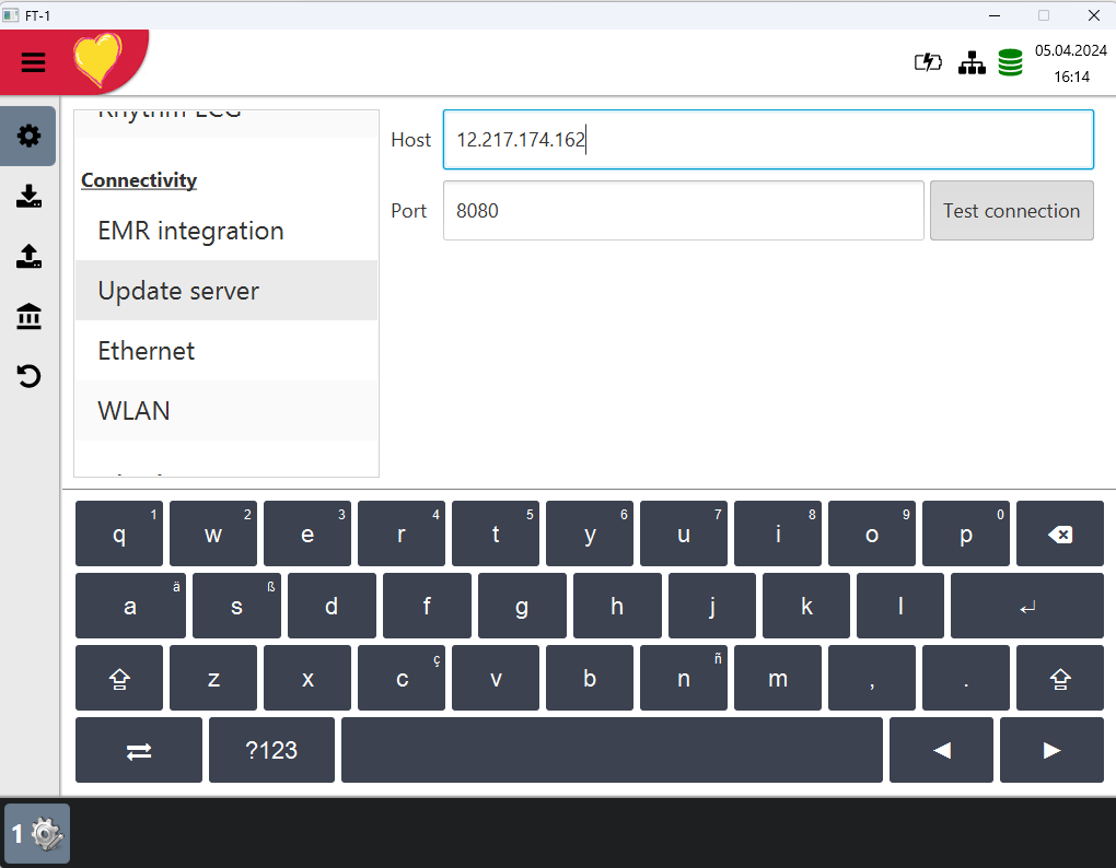 Go to Connectivity / Update server and write 12.17174.162 on the Host field and press Test connection bottom